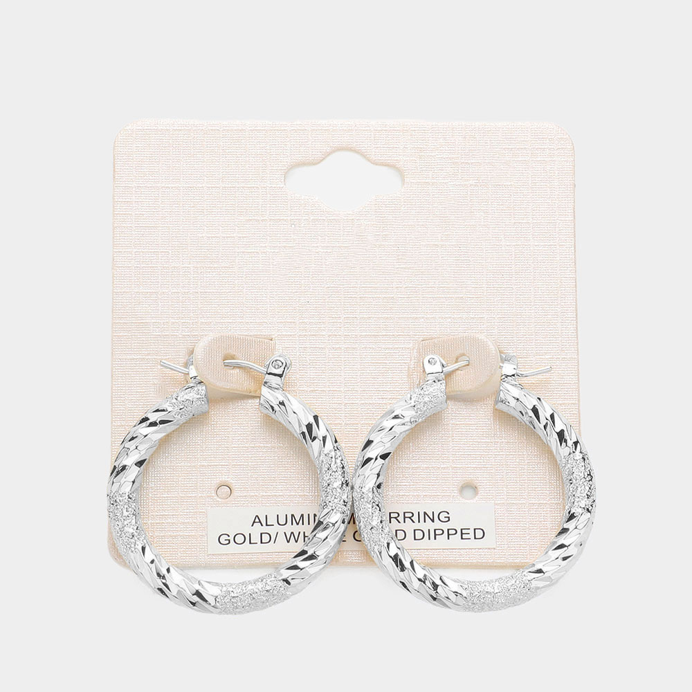 1.25" White Gold Dipped Textured Aluminum Pin Catch Hoop Earrings