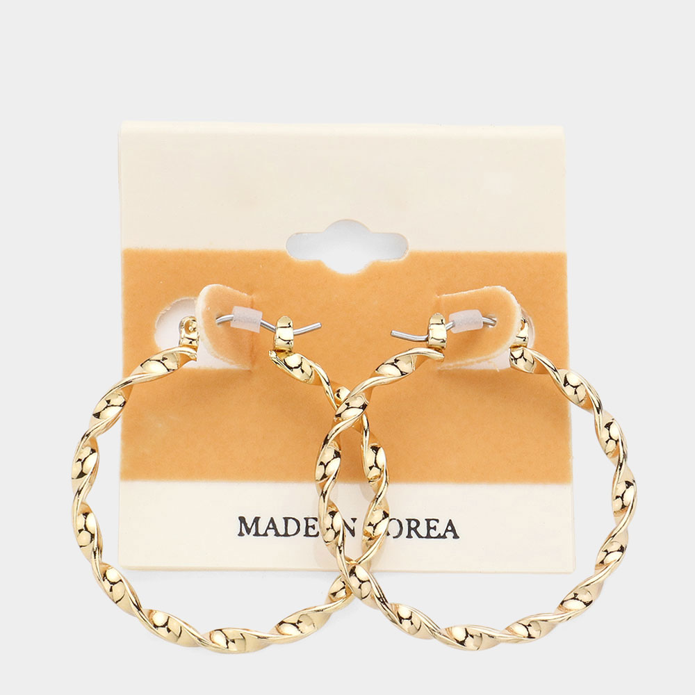 1.3" Twisted Metal Hoop Pin Catch Earrings