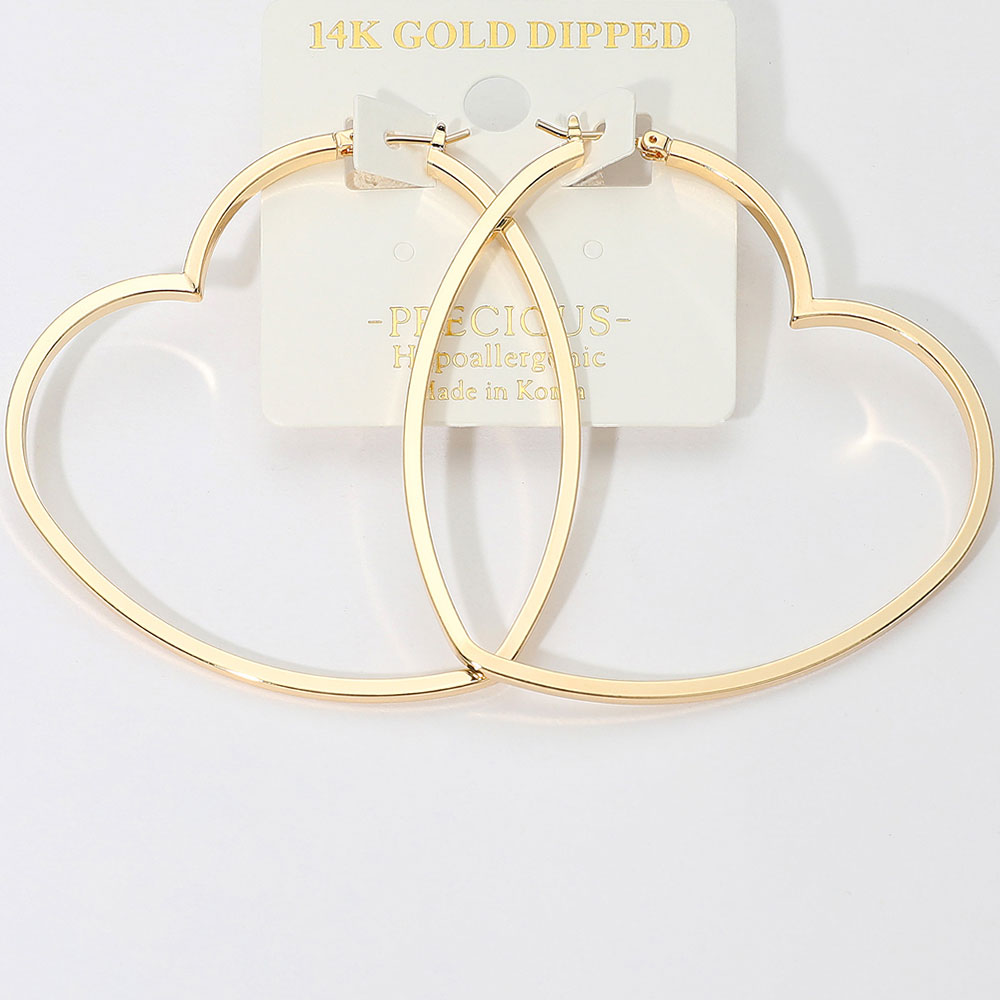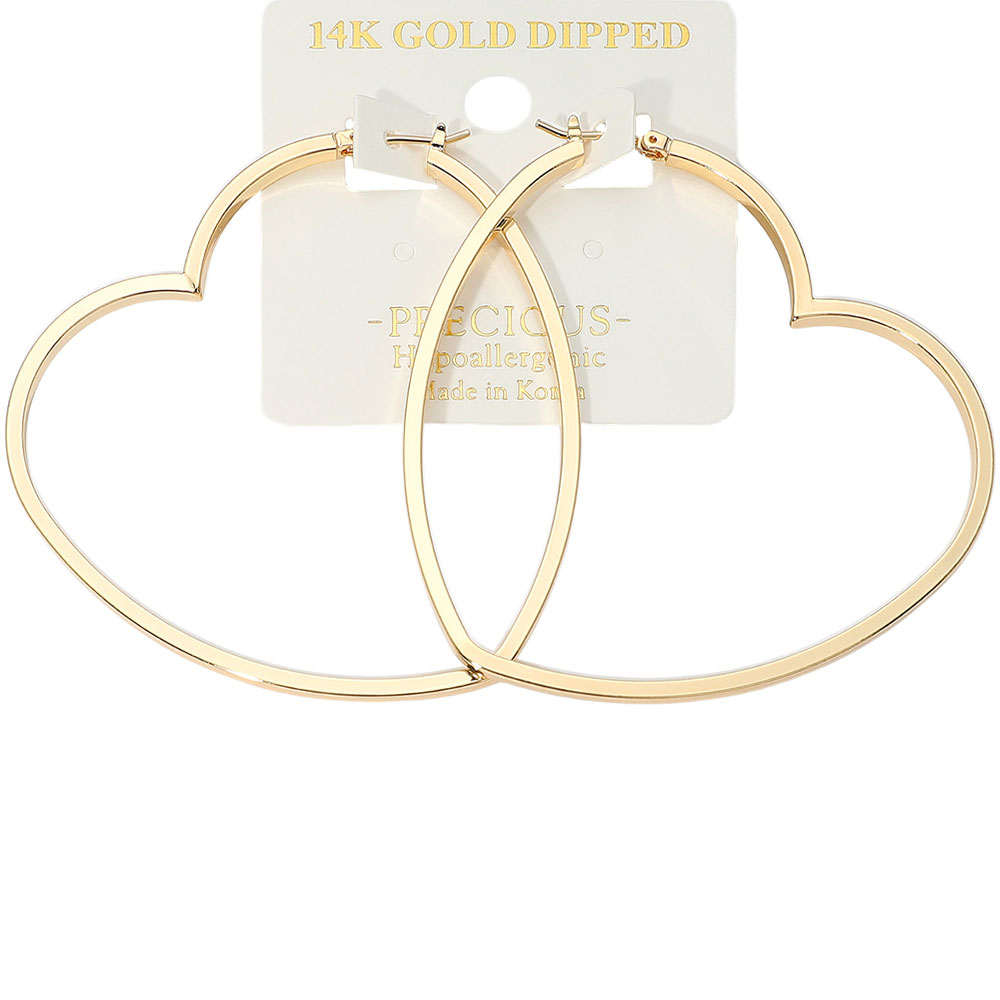 Details • Size : 2.5" X 2.4" • Pin Catch • Add a touch of romance to your style with these elegant open heart hoop earrings. Featuring a smooth, minimalist design, they offer a modern twist on a classic silhouette. Lightweight and hypoallergenic, perfect for everyday wear or special occasions with effortless charm. • Gold Dipped • Hypoallergenic • Made In Korea