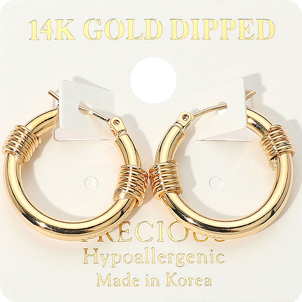 14K Gold Dipped Hypoallergenic Textured Hoop Pin Catch Earrings