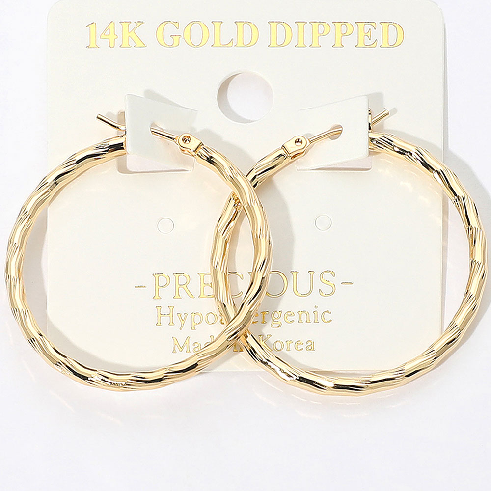 14K Gold Dipped Hypoallergenic Twisted Hoop Pin Catch Earrings