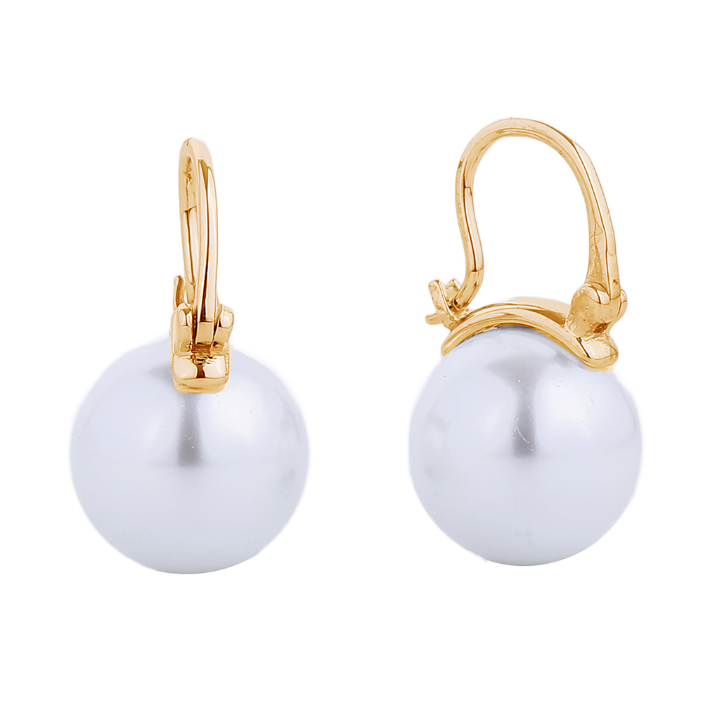 Details • Size : 0.6" X 0.9" • Pin Catch • Timeless pearl drop earrings featuring a smooth round finish and secure leverback closure. A refined accessory that adds sophistication and grace, perfect for both daily wear and formal occasions with enduring elegance. • Brass • Gold Dipped • Hypoallergenic • Lead and Nickel Compliant • Made In Korea