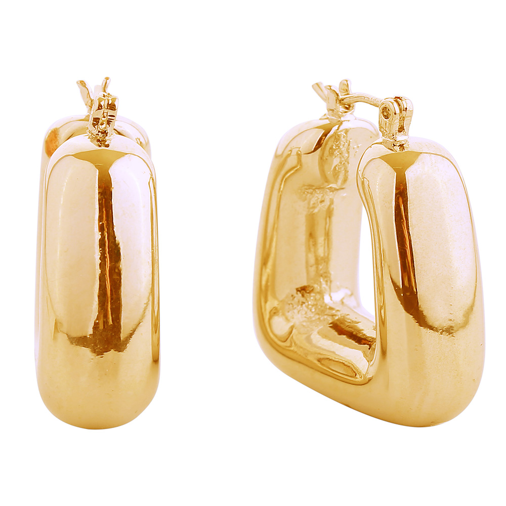 Details • Size : 1" X 1.1" • Pin Catch • Statement square hoop earrings crafted with a smooth, sculpted finish that merges elegance with a contemporary edge. Perfect for elevating casual looks or adding standout style to evening wear, these hoops bring a chic and versatile touch. • Brass • Gold Dipped • Hypoallergenic • Lead and Nickel Compliant • Made In Korea