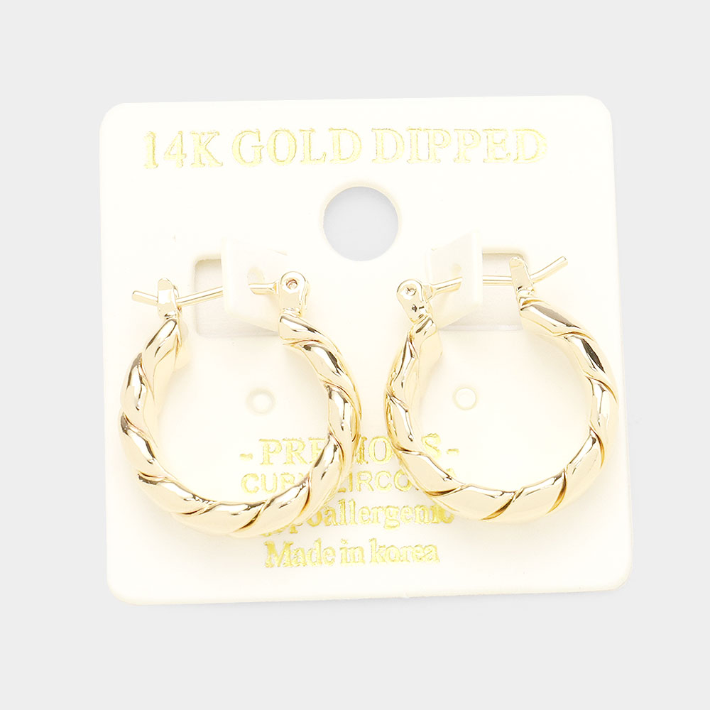 14K Gold Dipped Twisted Metal Hoop Pin Catch Earrings