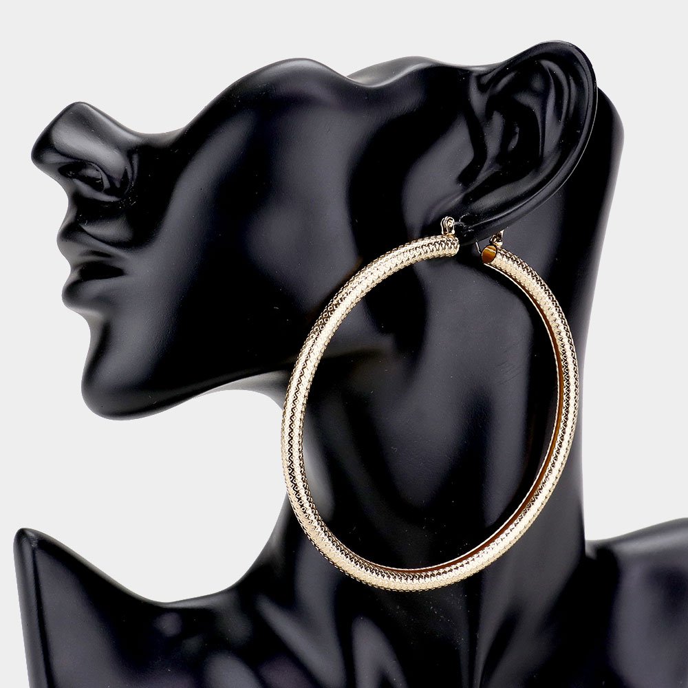 14K Gold Filled 3 inch Metal Hoop Pin Catch Earrings
