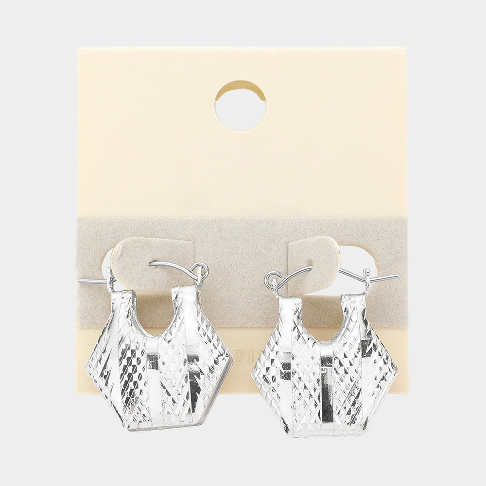 14K White Gold Dipped Abstract Metal Pin Catch Earrings