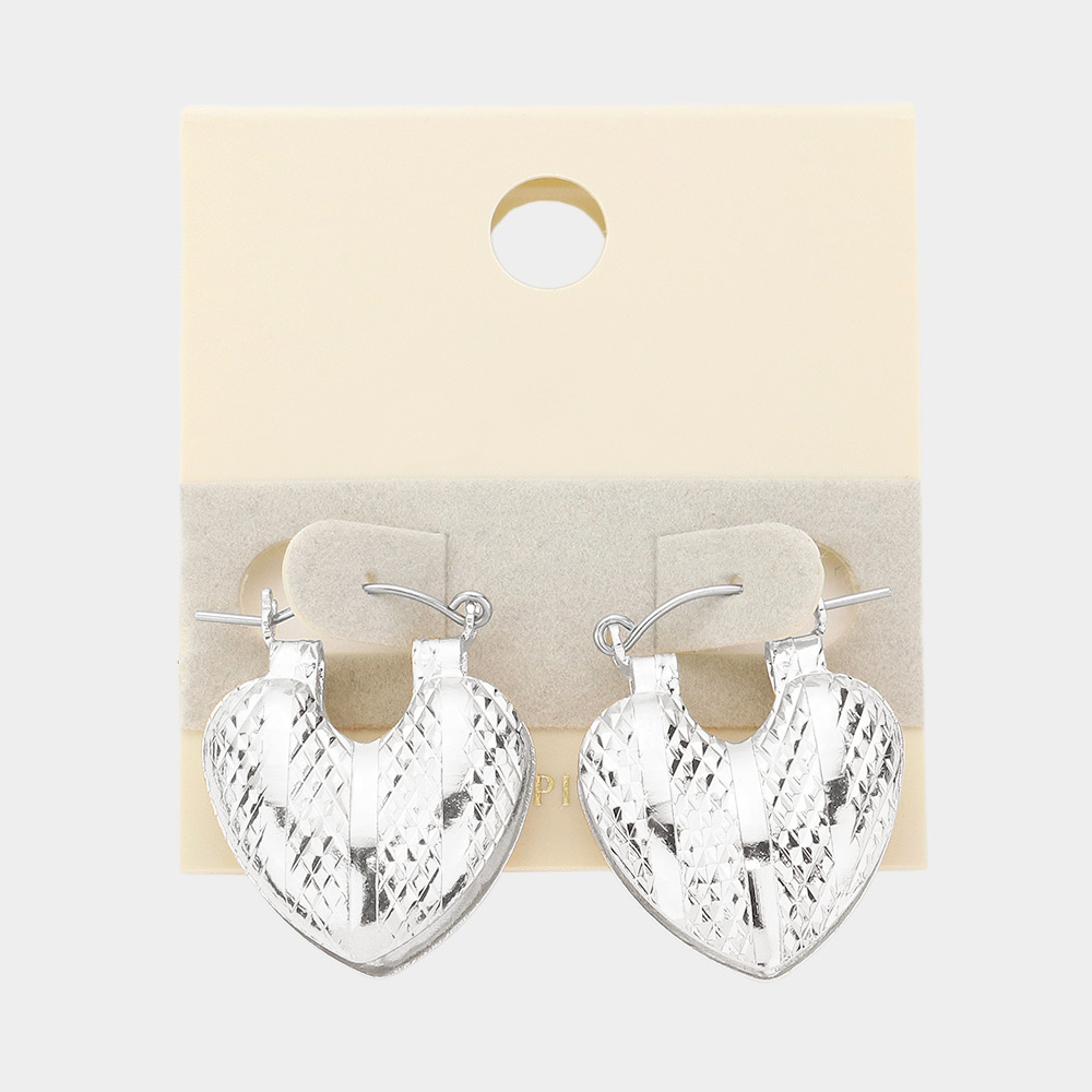 14K White Gold Dipped Heart Metal Pin Catch Earrings
