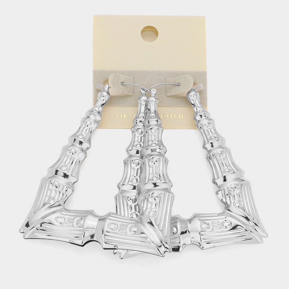 14K White Gold Filled Oversized Textured Metal Pin Catch Earrings