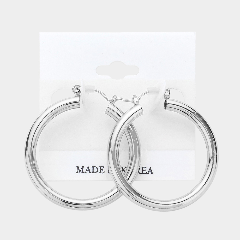 Brushed Metal Twisted Hoop Pin Catch Earrings