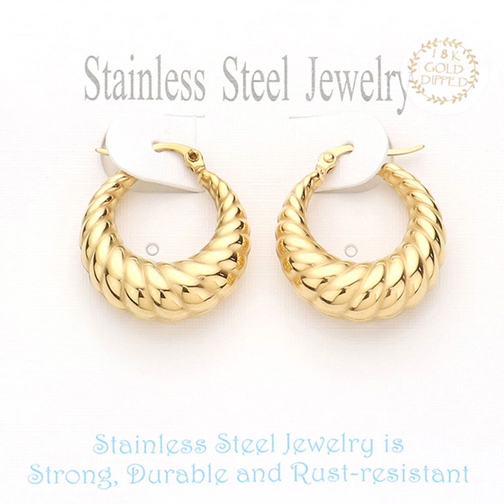 18K Gold Dipped Stainless Steel Textured Mini Hoop Pin Catch Earrings