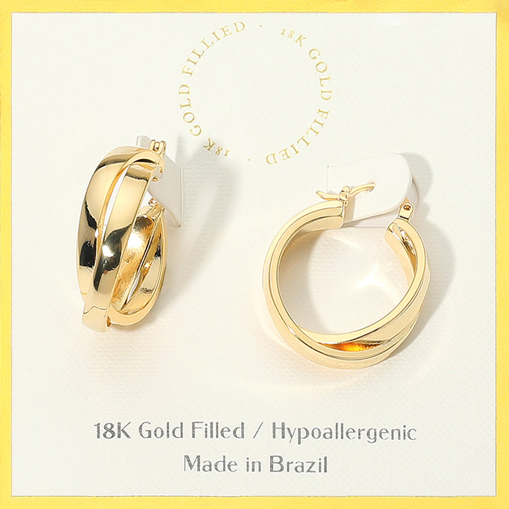 Details • Size : 1" X 1" • Pin Catch • Water Resistant and Tarnish Free • These twist design hoop earrings offer a refined, modern style that elevates any outfit. With a smooth, polished finish and a comfortable hypoallergenic build, they’re perfect for daily wear or special events, adding a subtle yet striking touch of elegance. • Lead and Nickel Compliant • Hypoallergenic • Gold Filled • Made In Brazil