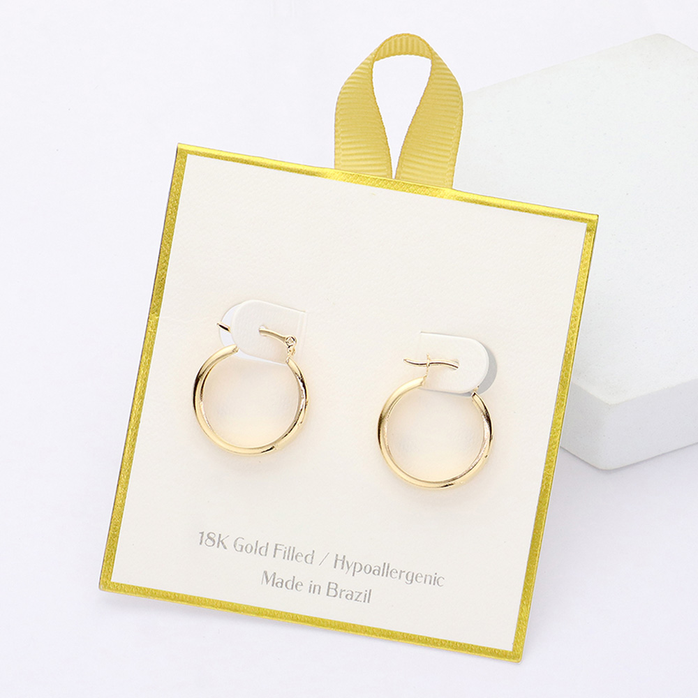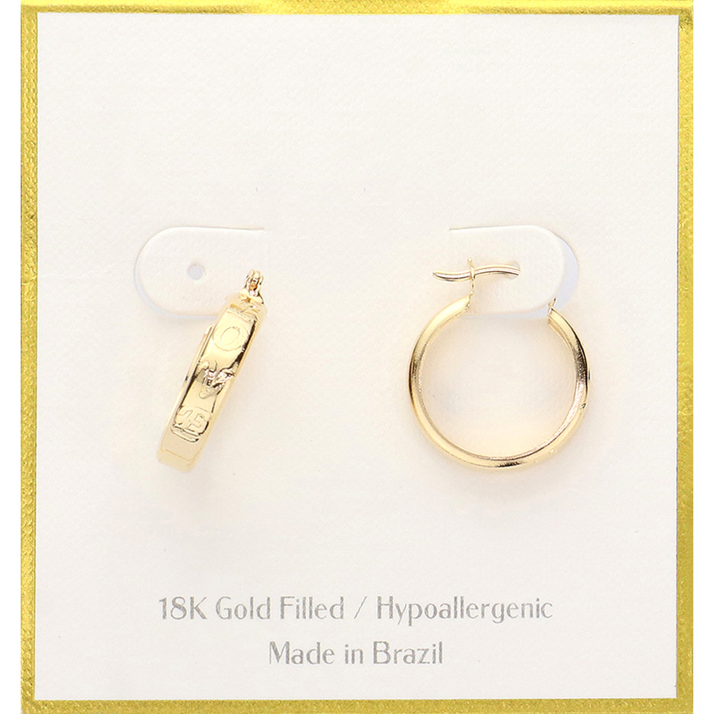Details • Size : 0.75" X 0.8" • Pin Catch • Elevate your everyday style with these 18K gold filled hoop earrings, crafted in Brazil and designed to be hypoallergenic for all-day comfort. Their sleek, timeless design makes them a versatile accessory, perfect for both casual and elegant looks. • Hypoallergenic • Gold Filled • Made In Brazil
