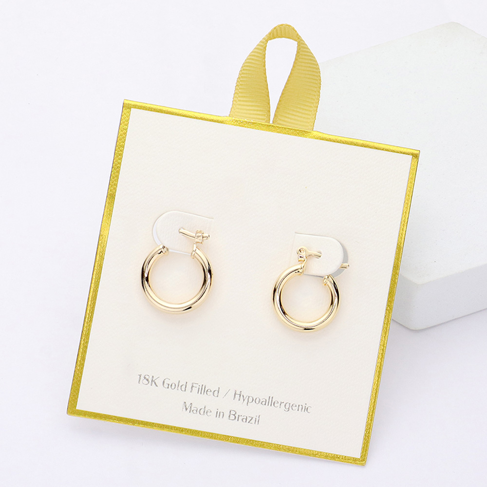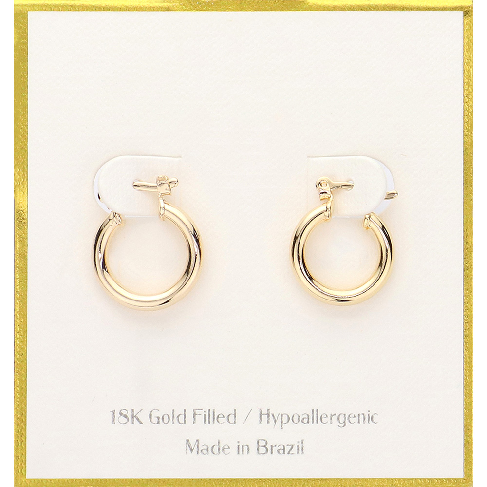 Details • Size : 0.6" X 0.75" • Pin Catch • Elegant small hoop earrings with a timeless design, ideal for daily wear or subtle accenting. Lightweight, hypoallergenic, and versatile enough to pair with casual or formal looks for a polished finish. • Hypoallergenic • Gold Filled • Made In Brazil