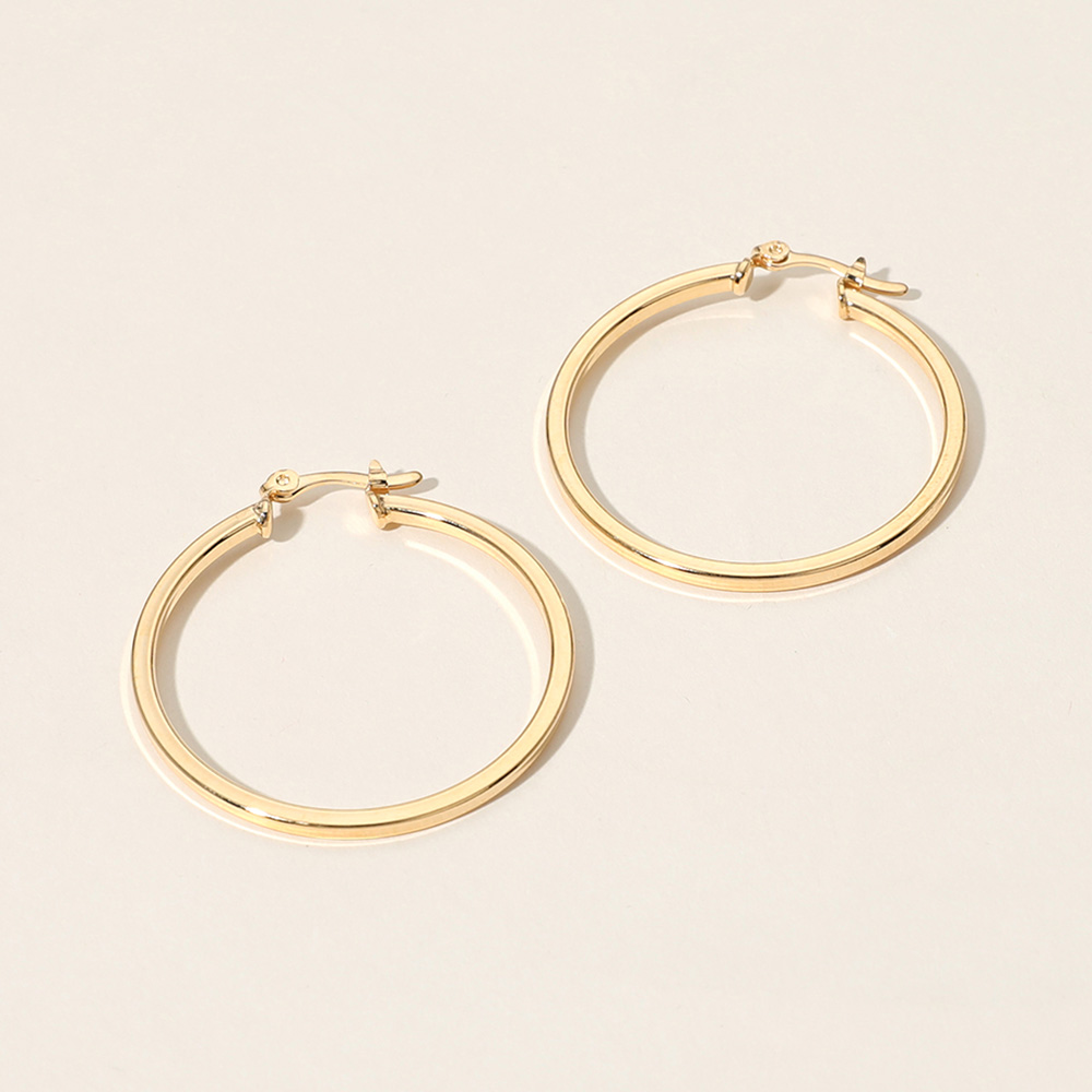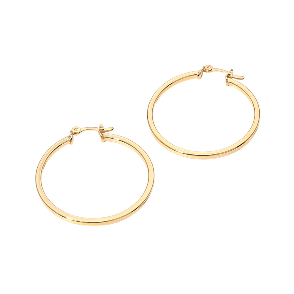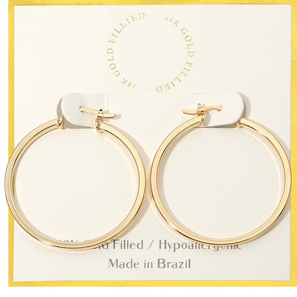 Details • Size : 1.4" X 1.4" • Pin Catch • Timeless round hoop earrings featuring a sleek, polished design ideal for any occasion. Lightweight and versatile, these earrings offer a refined touch to both casual and formal looks, perfect for daily elegance. • Lead and Nickel Compliant • Hypoallergenic • Gold Filled • Made In Brazil