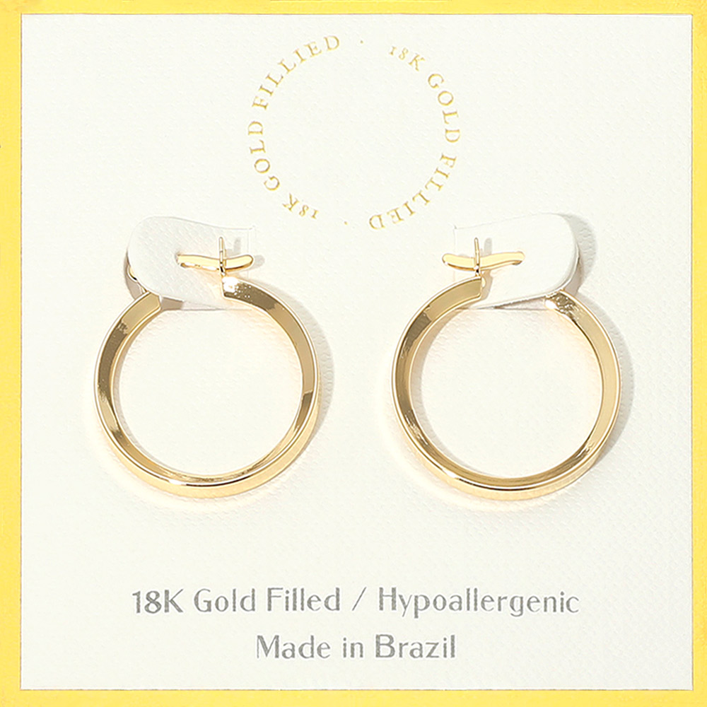Details • Size : 1" X 1" • Pin Catch • Water Resistant and Tarnish Free • These classic hoop earrings feature a refined, minimalist look designed for versatile styling. With a lightweight and hypoallergenic build, they offer lasting comfort and timeless appeal, making them a must-have accessory for daily wear or special occasions. • Lead and Nickel Compliant • Hypoallergenic • Gold Filled • Made In Brazil