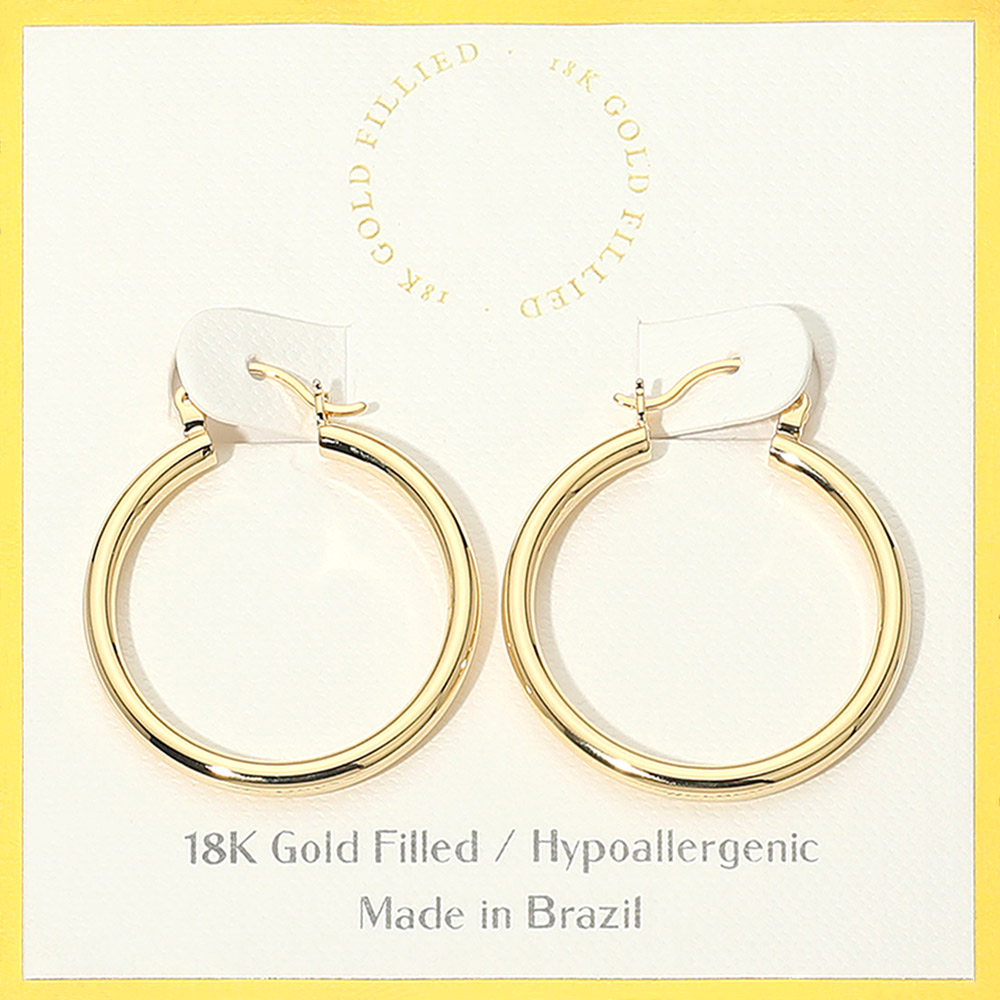 Details • Size : 1.2" X 1.2" • Pin Catch • Water Resistant and Tarnish Free • These timeless hoop earrings bring a balance of simplicity and elegance, perfect for enhancing any outfit. Their lightweight and hypoallergenic design ensures lasting comfort, making them ideal for daily wear or special events while adding effortless sophistication. • Lead and Nickel Compliant • Hypoallergenic • Gold Filled • Made In Brazil
