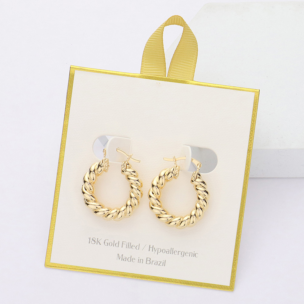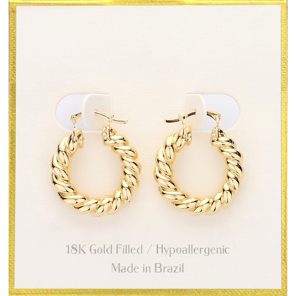 Details • Size : 0.9" X 1" • Pin Catch • These twisted hoop earrings feature a bold, sculptural design that adds dimension and sophistication to any look. Lightweight and comfortable, they’re ideal for both casual and formal wear, making them a standout accessory in any jewelry collection. • Hypoallergenic • Gold Filled • Made In Brazil