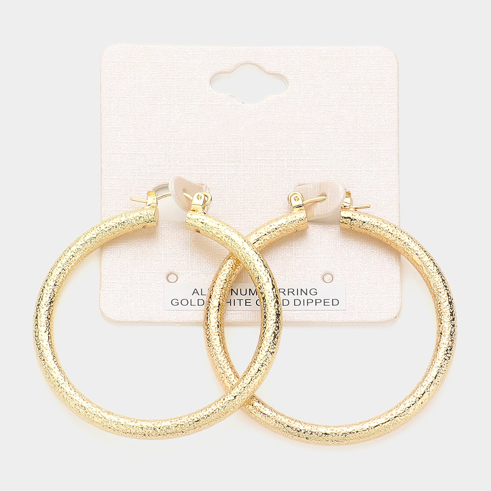 2" Gold Dipped Textured Aluminum Pin Catch Hoop Earrings