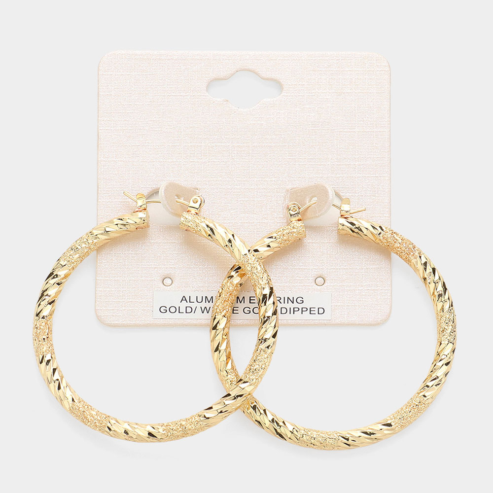 2" Gold Dipped Textured Aluminum Pin Catch Hoop Earrings
