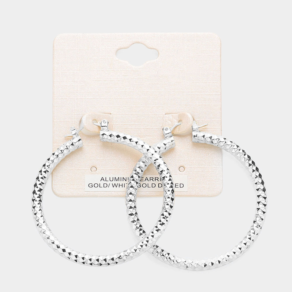 2" White Gold Dipped Textured Aluminum Pin Catch Hoop Earrings