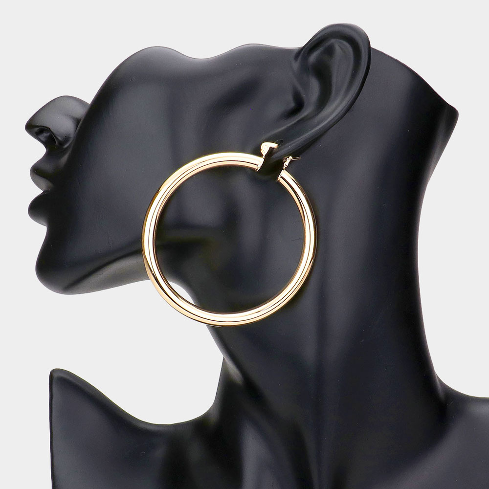 3 Inch Metal Hoop Pin Catch Earrings