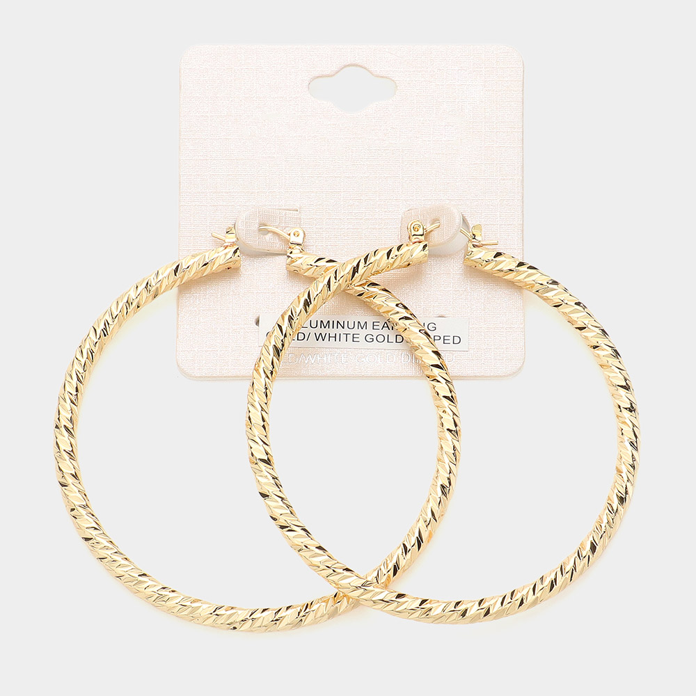 2.7" Gold Dipped Textured Aluminum Pin Catch Hoop Earrings