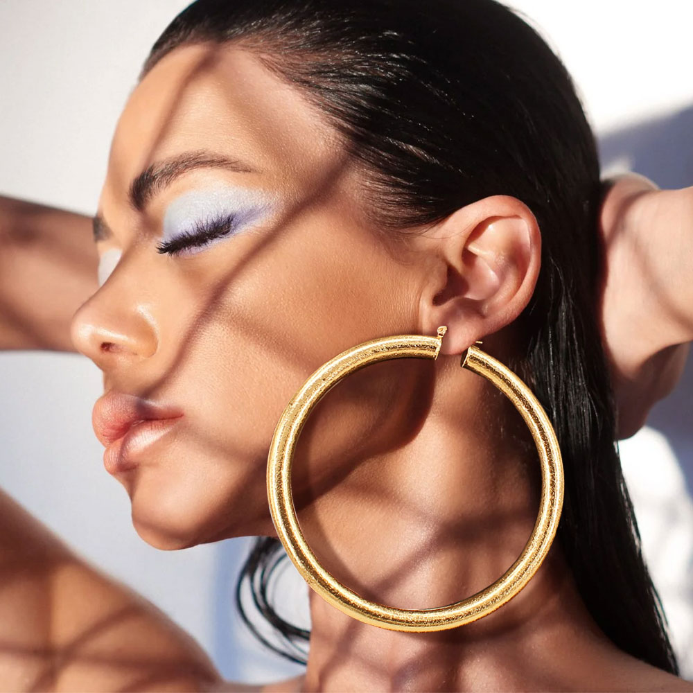 3 Inch Textured Metal Pin Catch Hoop Earrings