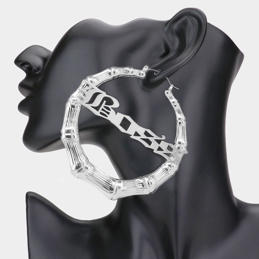 BOSS Metal Bamboo Hoop Message Pin Catch Earrings
