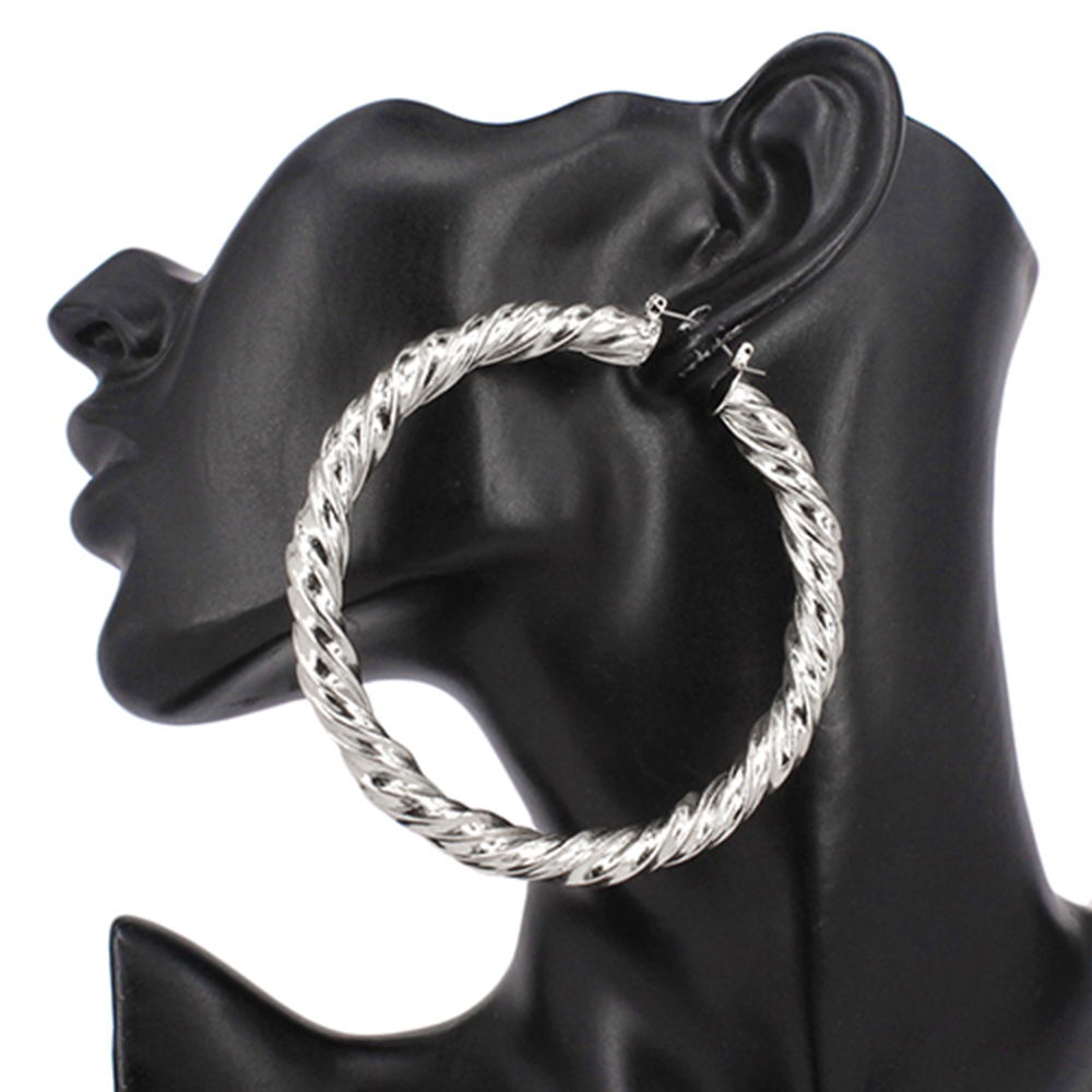 Brushed Metal Twisted Hoop Pin Catch Earrings