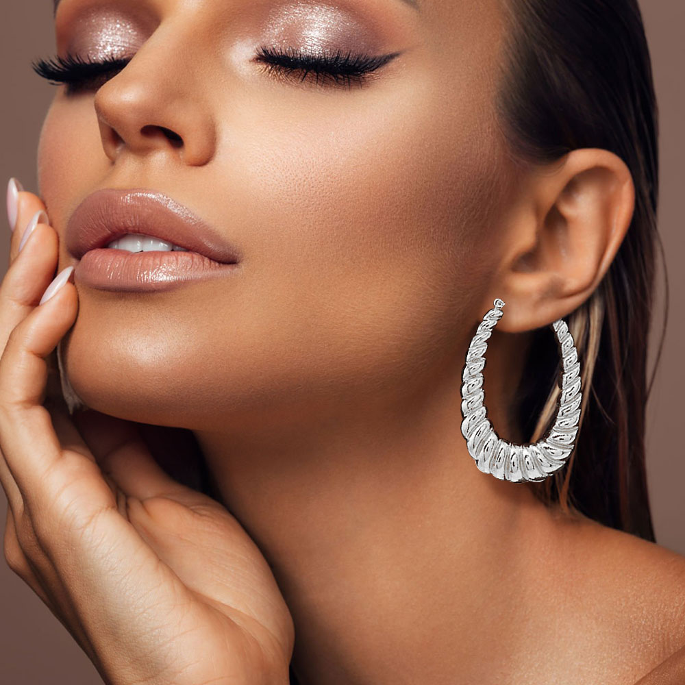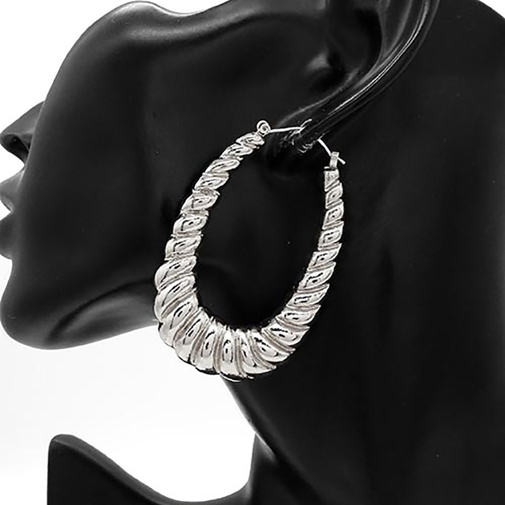 Chunky Metal Croissant Twisted Oval Hoop Pin Catch Earrings