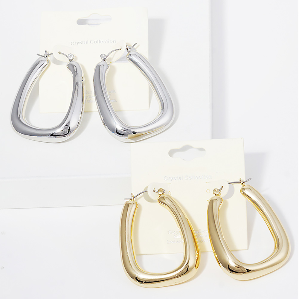 Chunky Metal Tube Pin Catch Hoop Earrings