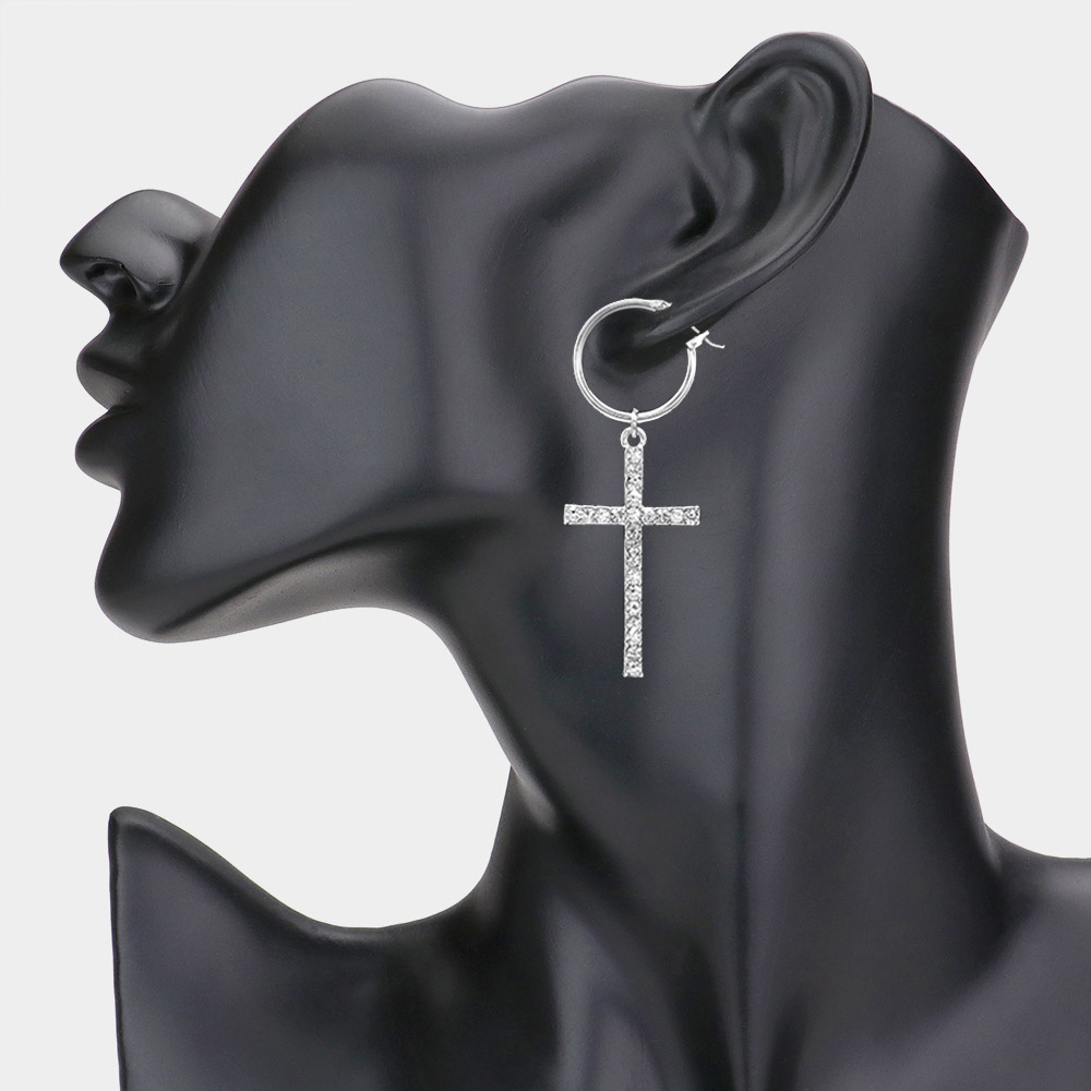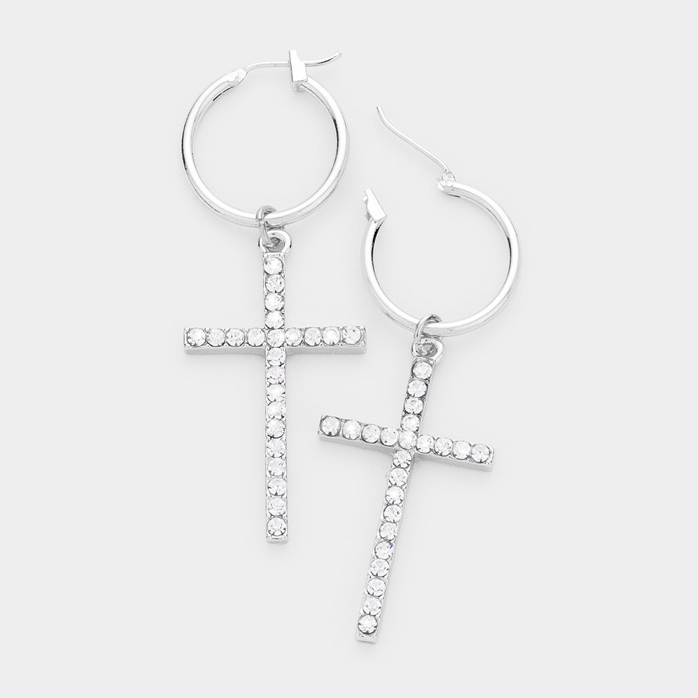 Cross Crystal Rhinestone Pave Pin Catch Earrings