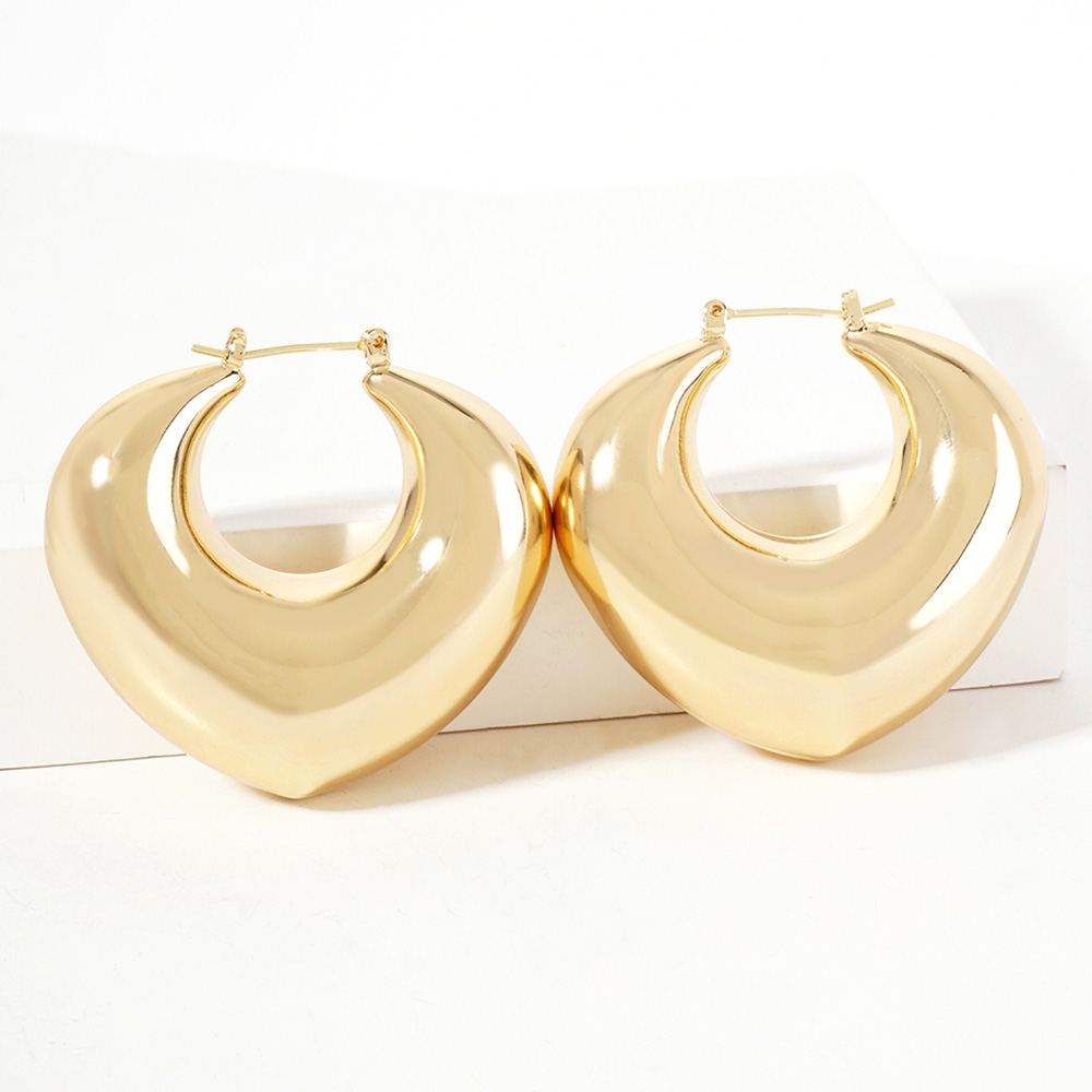 Gold Dipped Puffy Rhombus Pin Catch Hoop Earrings
