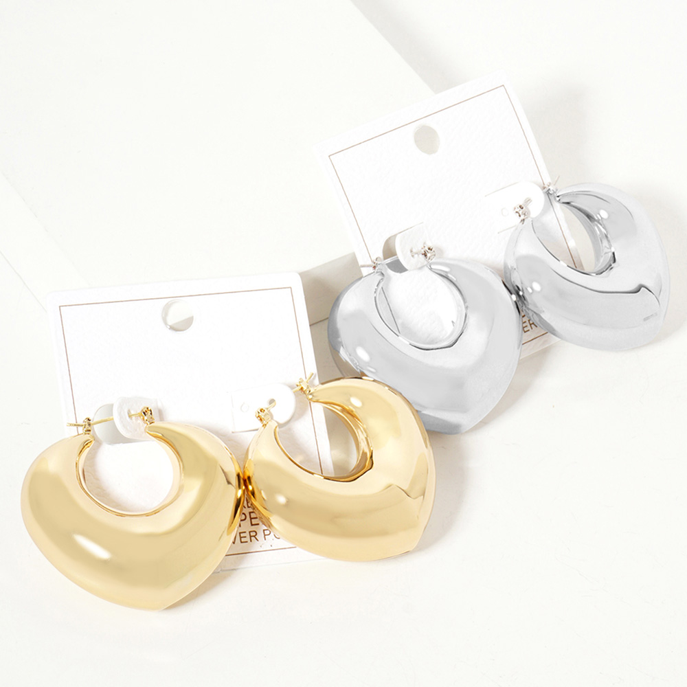 White Gold Dipped Puffy Rhombus Pin Catch Hoop Earrings