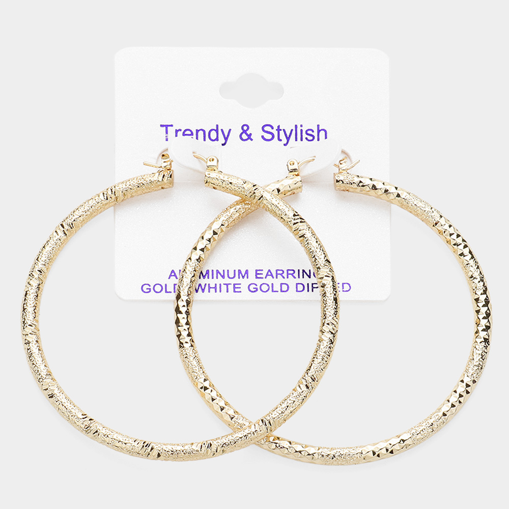 White Gold Dipped Textured Aluminum Hoop Earrings