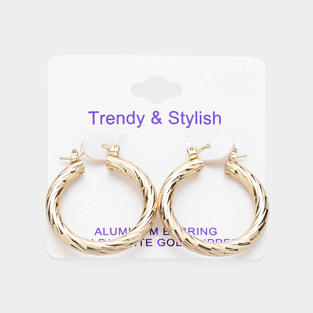 Gold Dipped Textured Aluminum Hoop Earrings