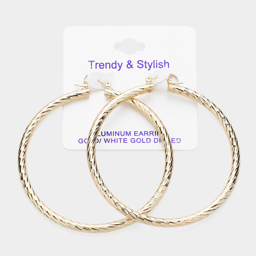 White Gold Dipped Textured Aluminum Hoop Earrings