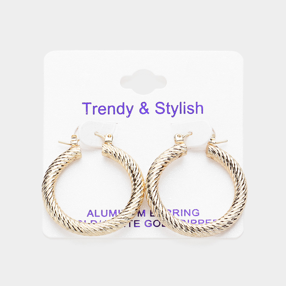 White Gold Dipped Textured Aluminum Hoop Earrings