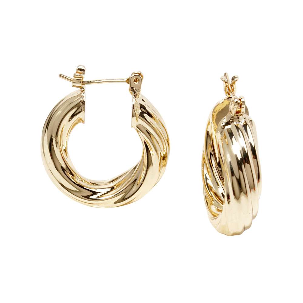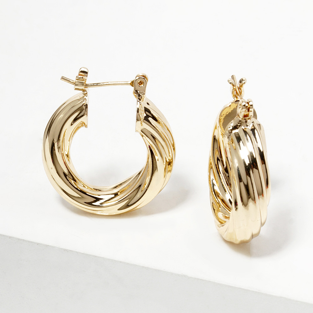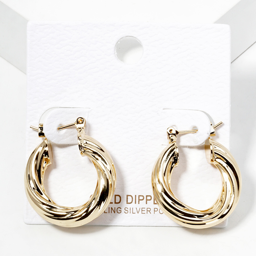 Gold Dipped Textured Pin Catch Hoop Earrings