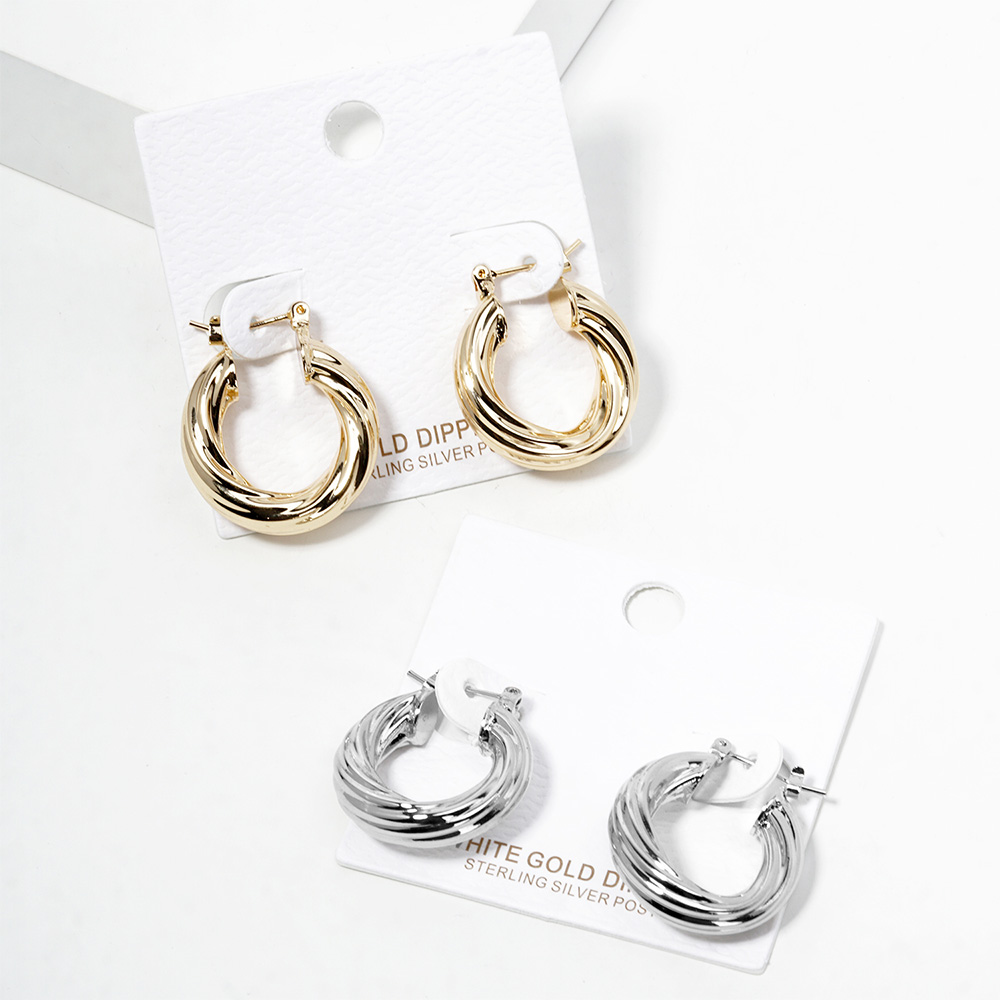 White Gold Dipped Textured Pin Catch Hoop Earrings