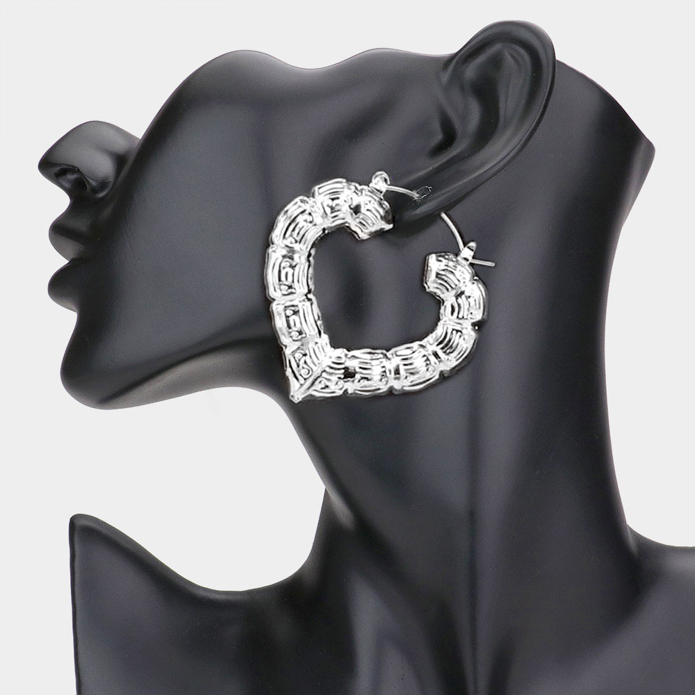 LOVE Metal Bamboo Hoop Message Pin Catch Earrings