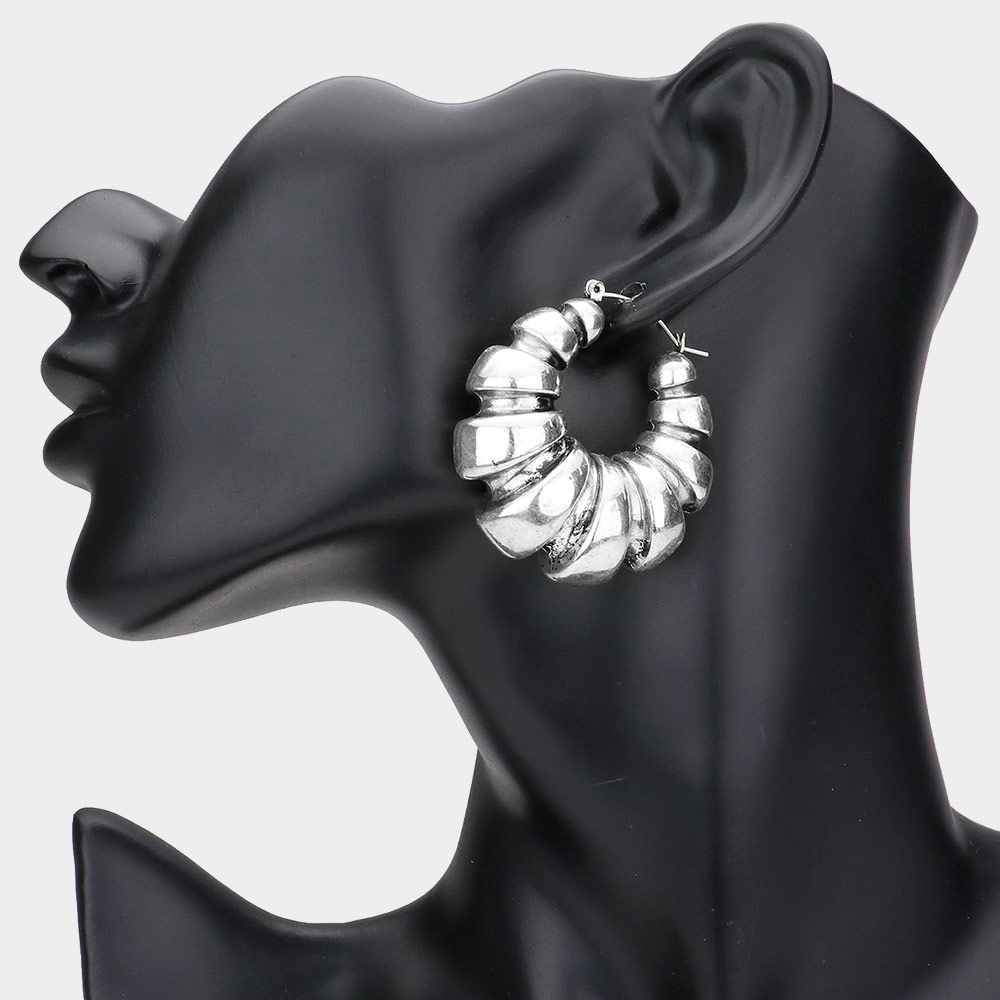 2PCS - Bold Antique Metal Cross Multi Layered Crystal Statement Necklace