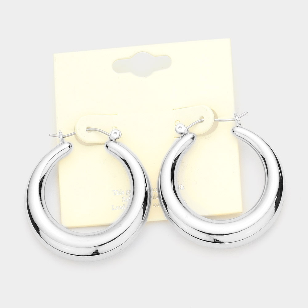 Silver Dipped Sterling Silver Post Mini Chunky Hoop Earrings