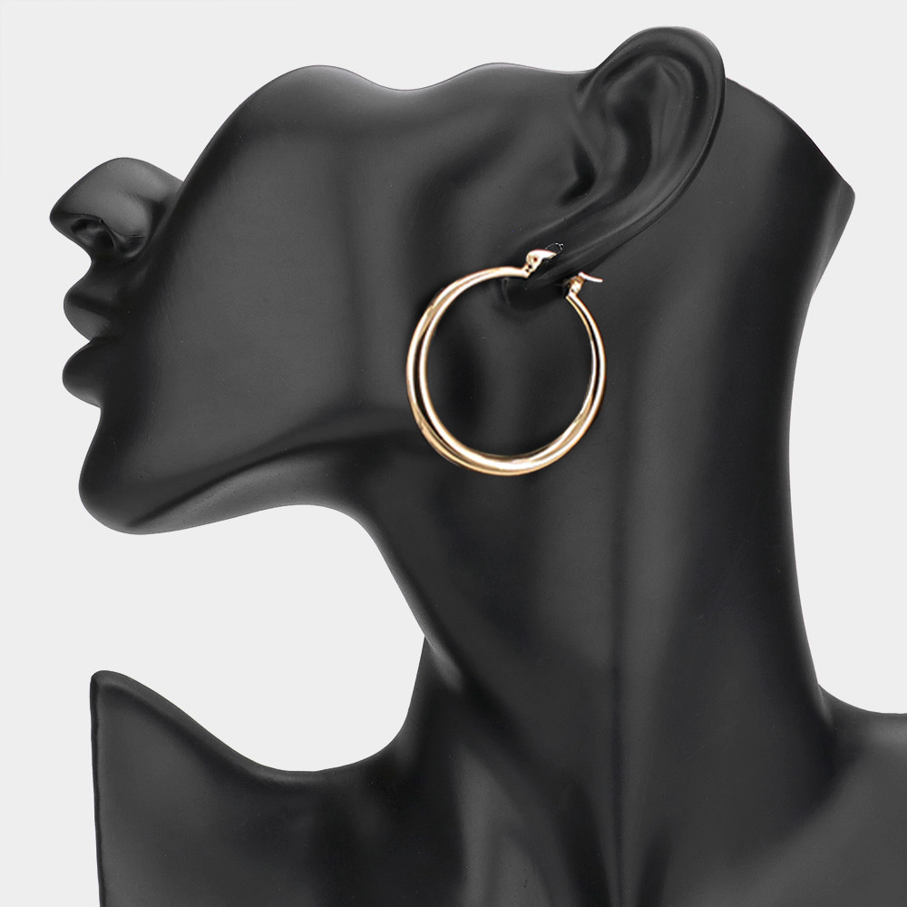 12Pairs - Open Metal Bamboo Circle Clip On Earrings