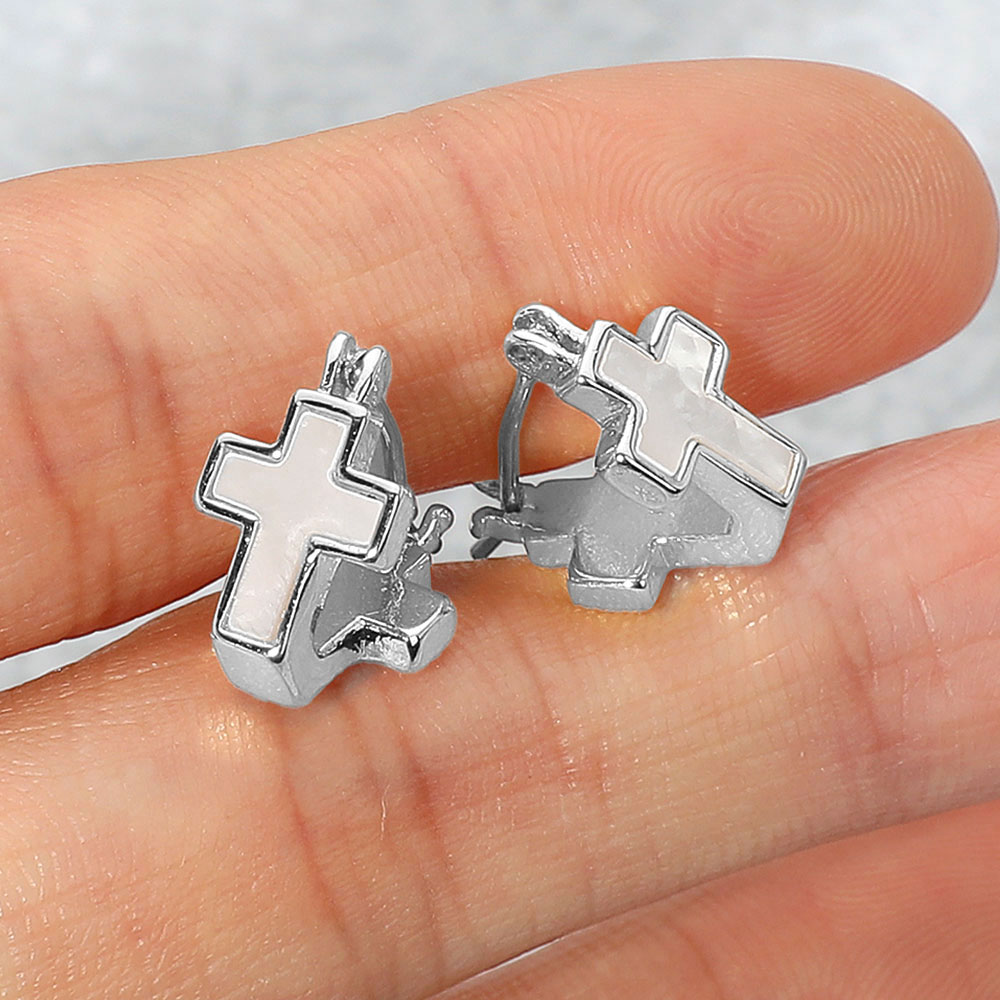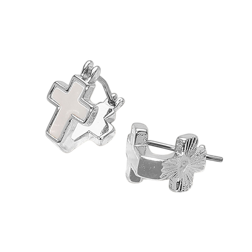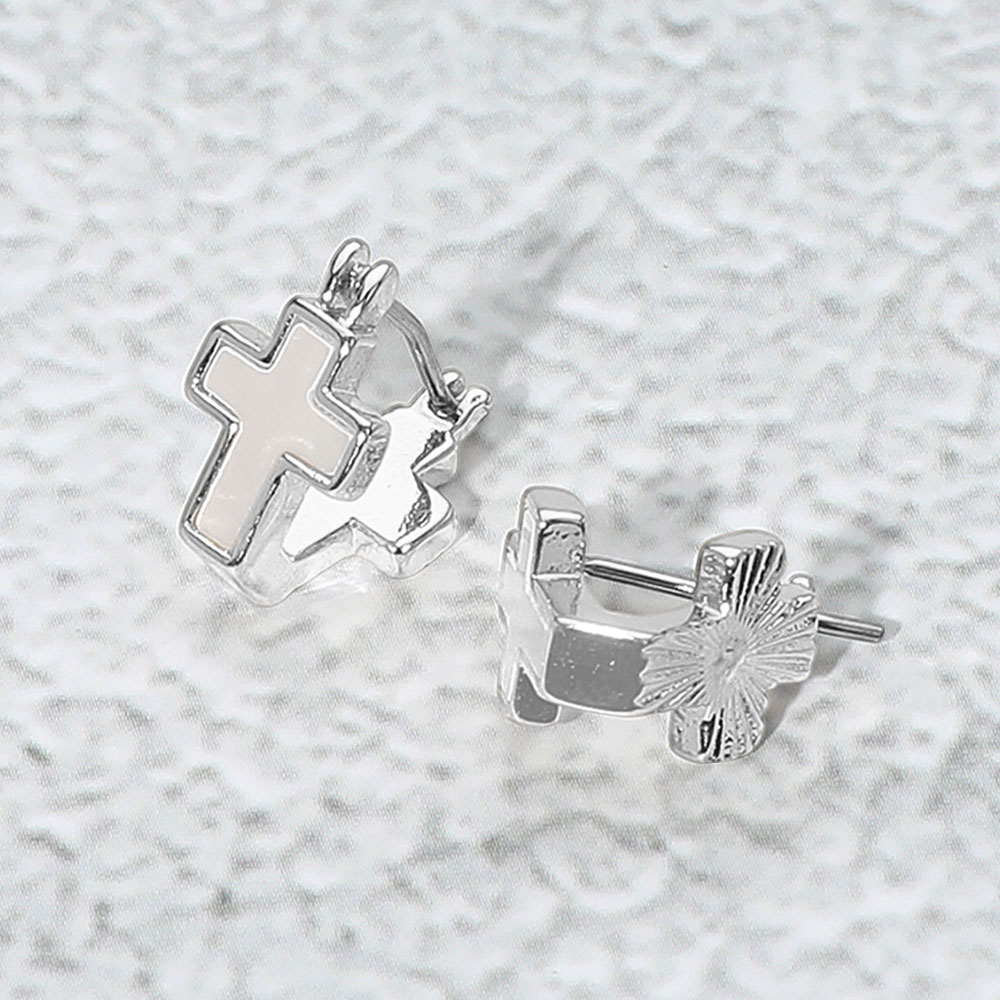 Details • Size : 0.3" X 0.5" • Pin Catch • Compact pin catch earrings featuring a cross charm and engraved sunburst detailing. A refined accessory ideal for everyday wear or layered earring looks with a spiritual touch. • Brass • Lead and Nickel Compliant