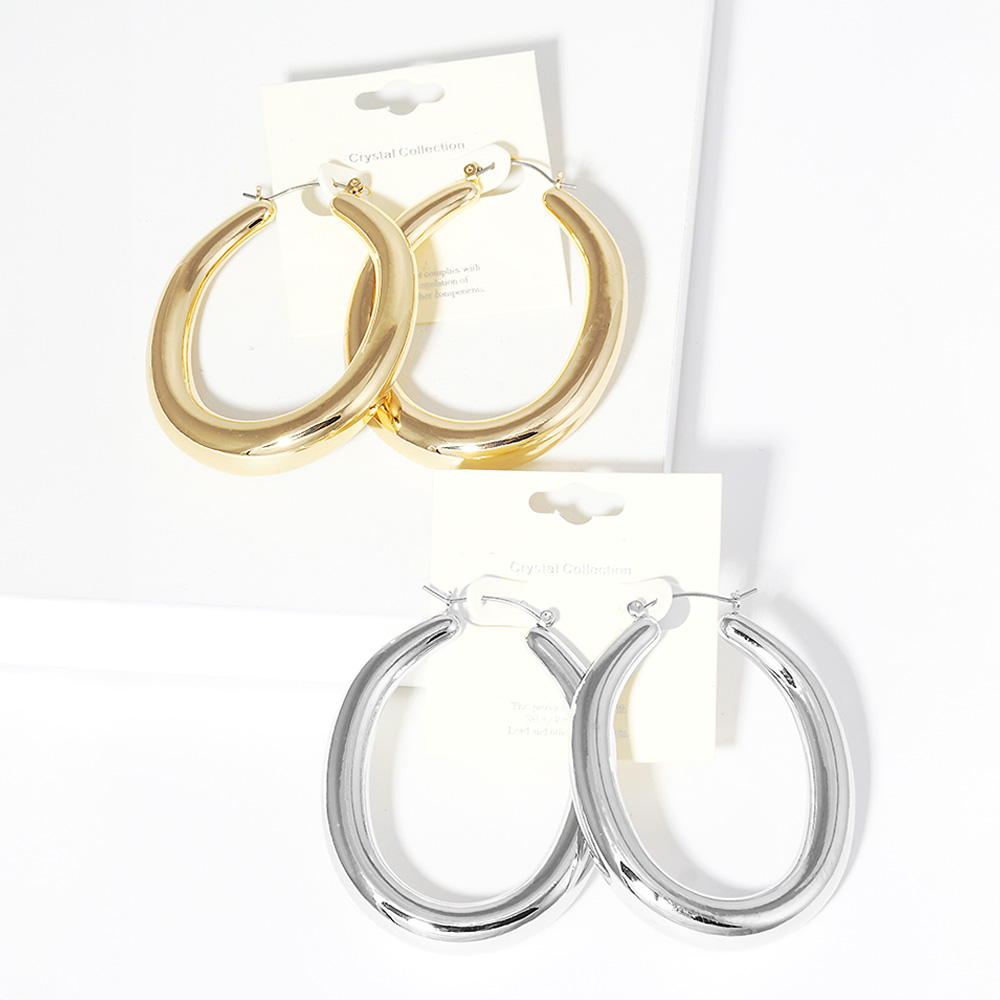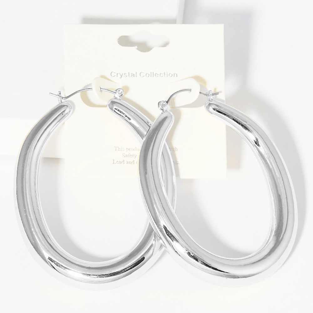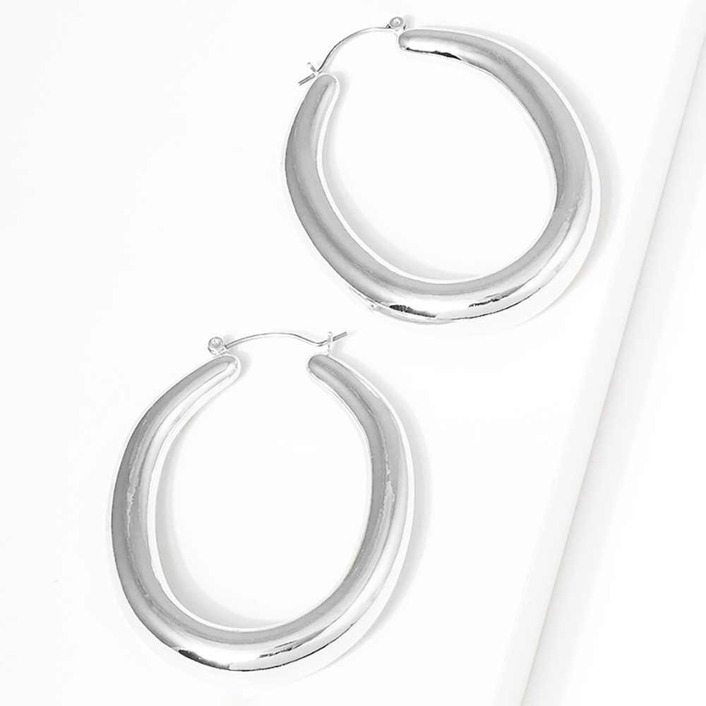 14K White Gold Dipped Double Open Metal Circle Link Earrings
