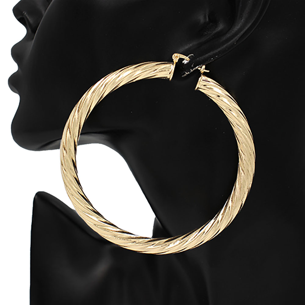 Oversized Metal Twisted Pin Catch Hoop Earrings