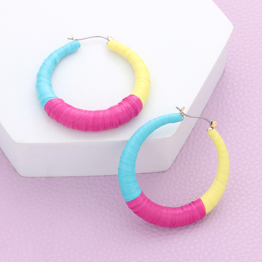 Raffia Wrapped Hoop Pin Catch Earrings