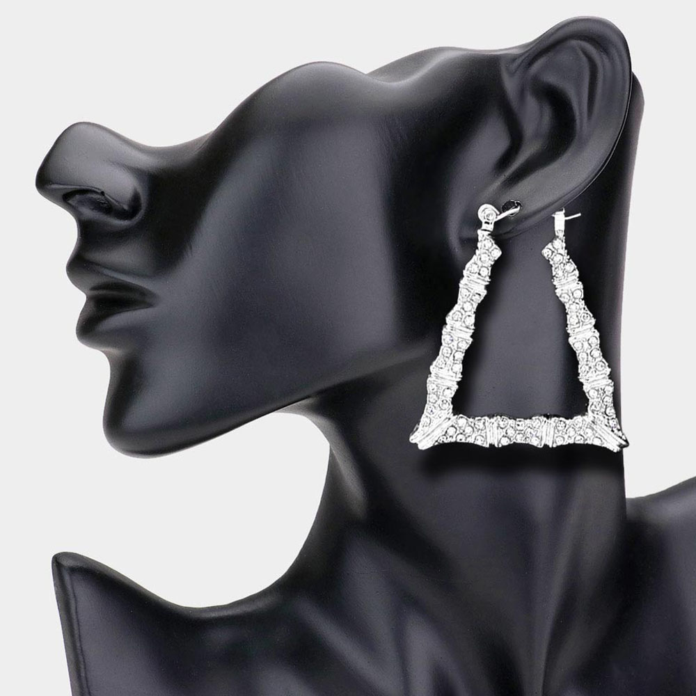 Rhinestone Pave Bamboo Pin Catch Earrings