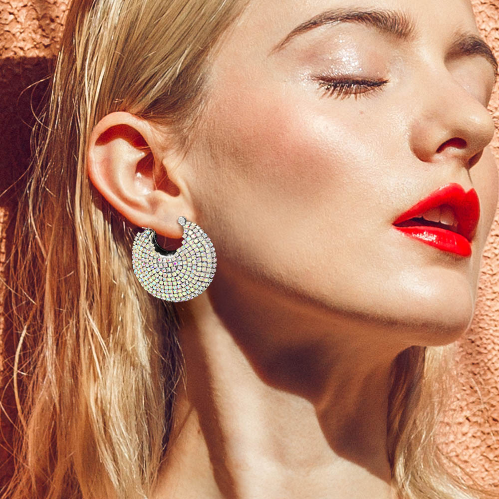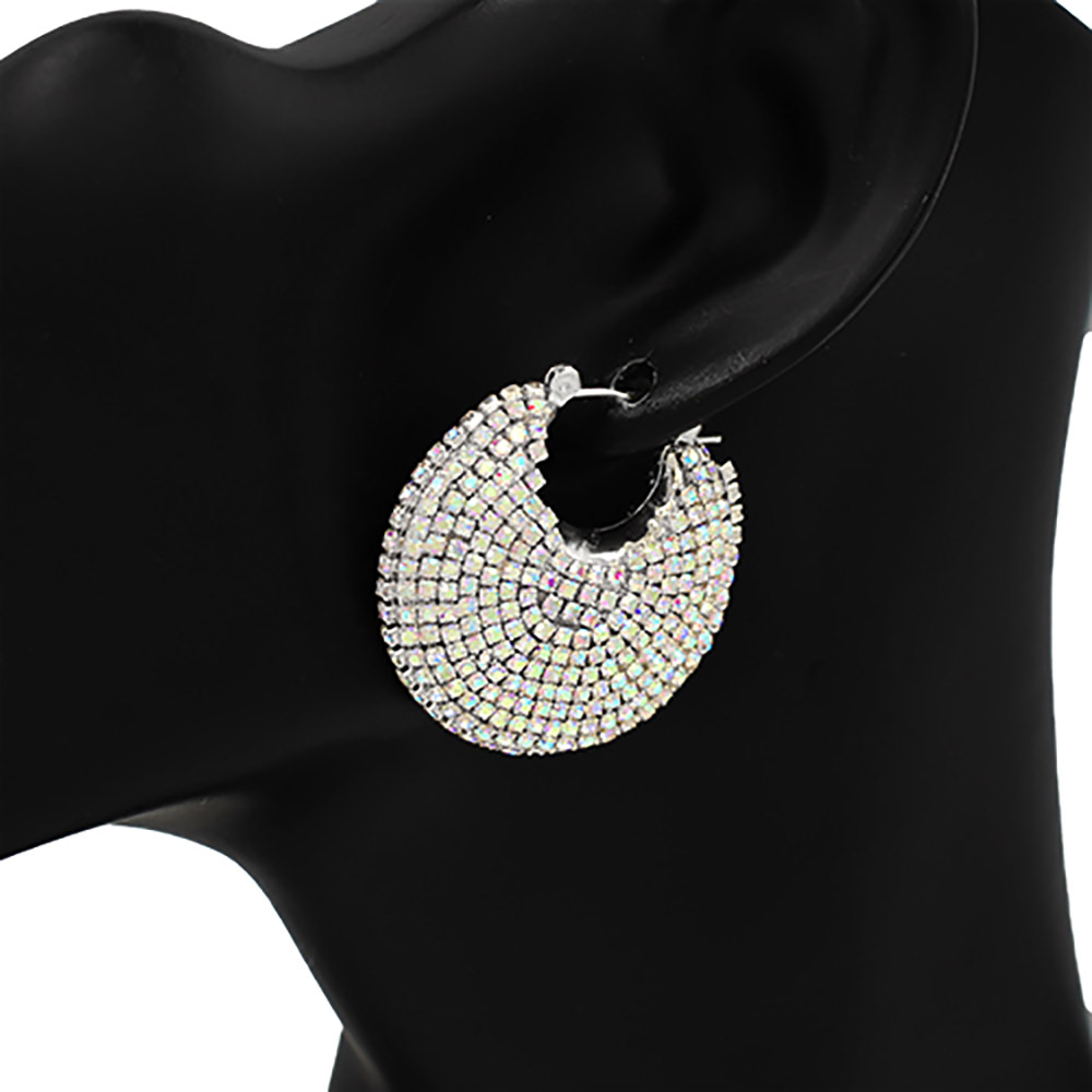 Rhinestone Paved Hoop Pin Catch Earrings